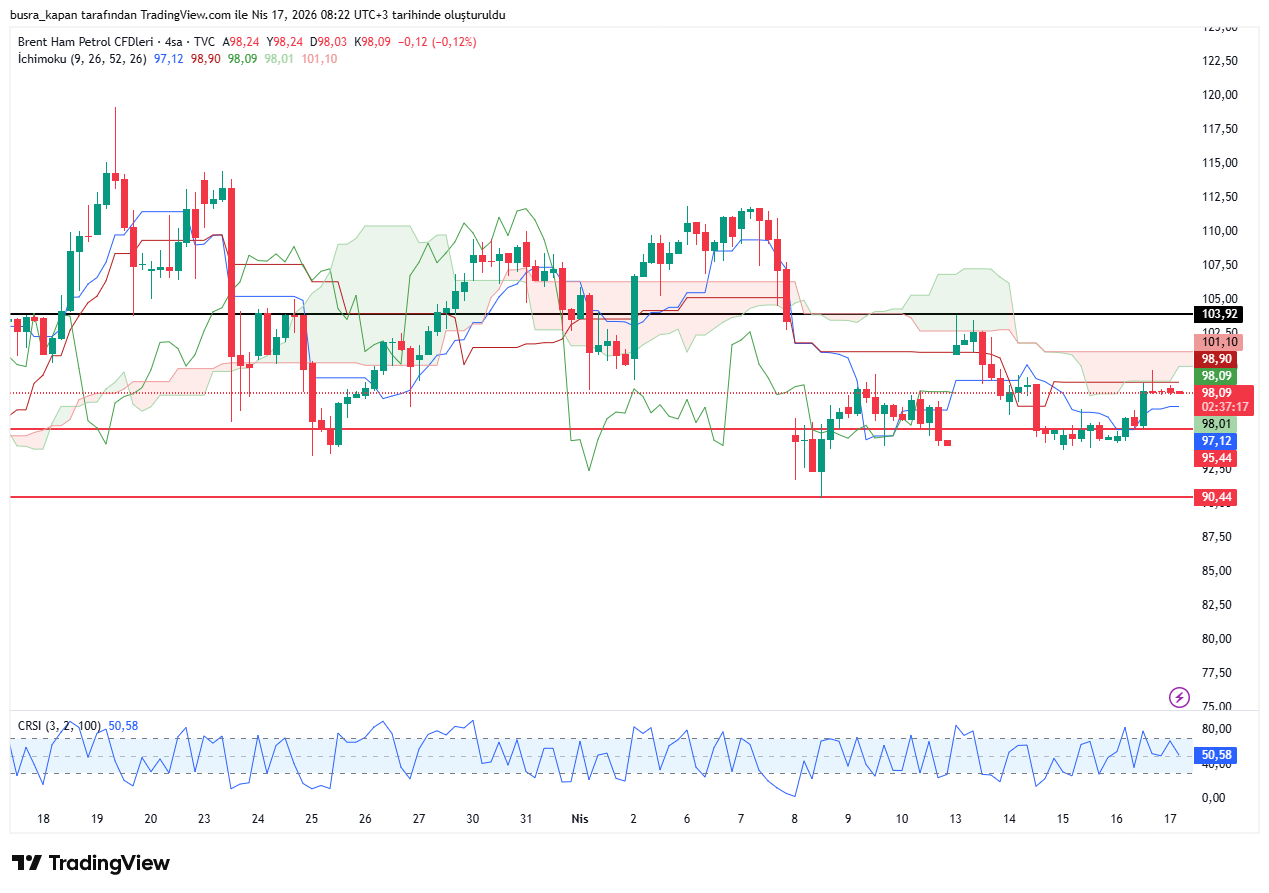 Petrol fiyatları haftanın son işlem gününde Trump’ın kalıcı barış mesajlarına rağmen yatay bir seyir sergiliyor. Brent petrol bugün sabah seansında 08.18’de 98 dolarda bulunuyor.