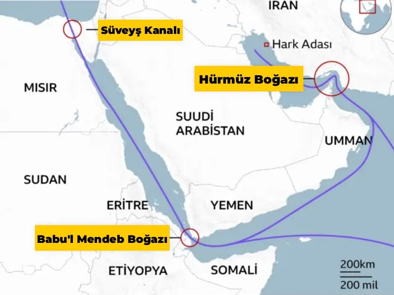 İran, Babu’l Mendeb’i Yemen’deki Husilerin yardımıyla kapatırsa, Kızıldeniz’i de kilitlemiş olacak.