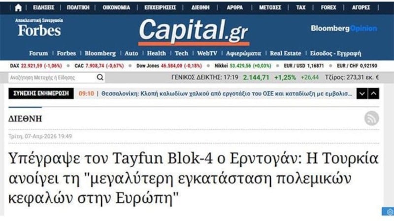 Yunan medyası, Erdoğan’ın imzasını “daha fazla öz yeterlilik, yüksek seri üretim ve caydırıcılığı güçlendirme” olarak yorumladı. Törende Tayfun, SİPER, ATMACA, HİSAR ve diğer kritik sistemlerin teslimatları, Türkiye’nin savunma sanayisindeki kararlılığının simgesi olarak gösterildi.