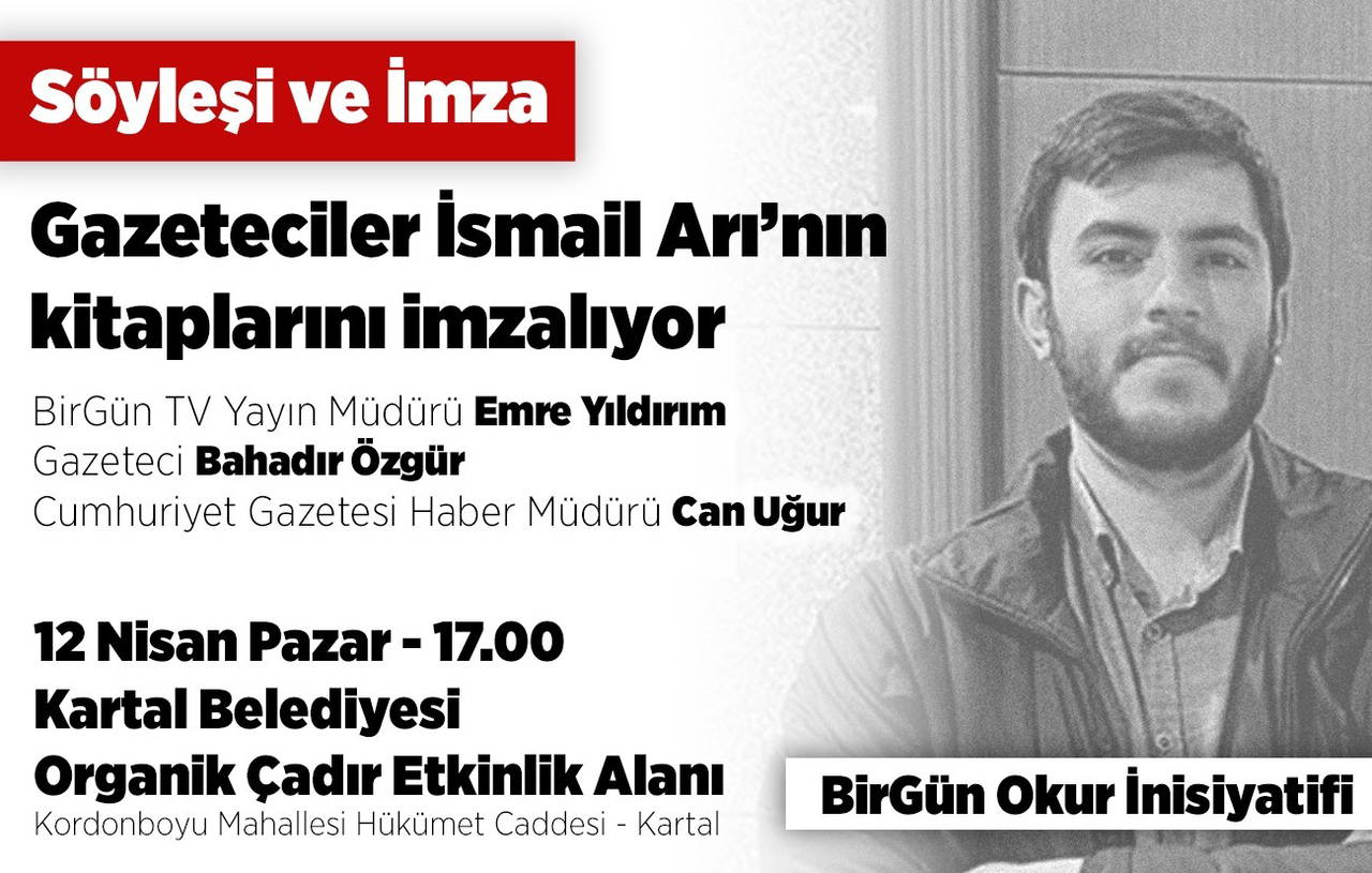 Gazeteciler tarafından düzenlenen etkinlikte, İsmail Arı’nın kitapları imzalanacak ve söyleşi gerçekleştirilecek. Programda Arı’nın gazetecilik çalışmaları ile hakkında yürütülen hukuki sürecin ele alınması bekleniyor. Etkinlik, 12 Nisan Pazar günü saat 17.00’de Kartal Belediyesi Organik Çadır Etkinlik Alanı’nda yapılacak.