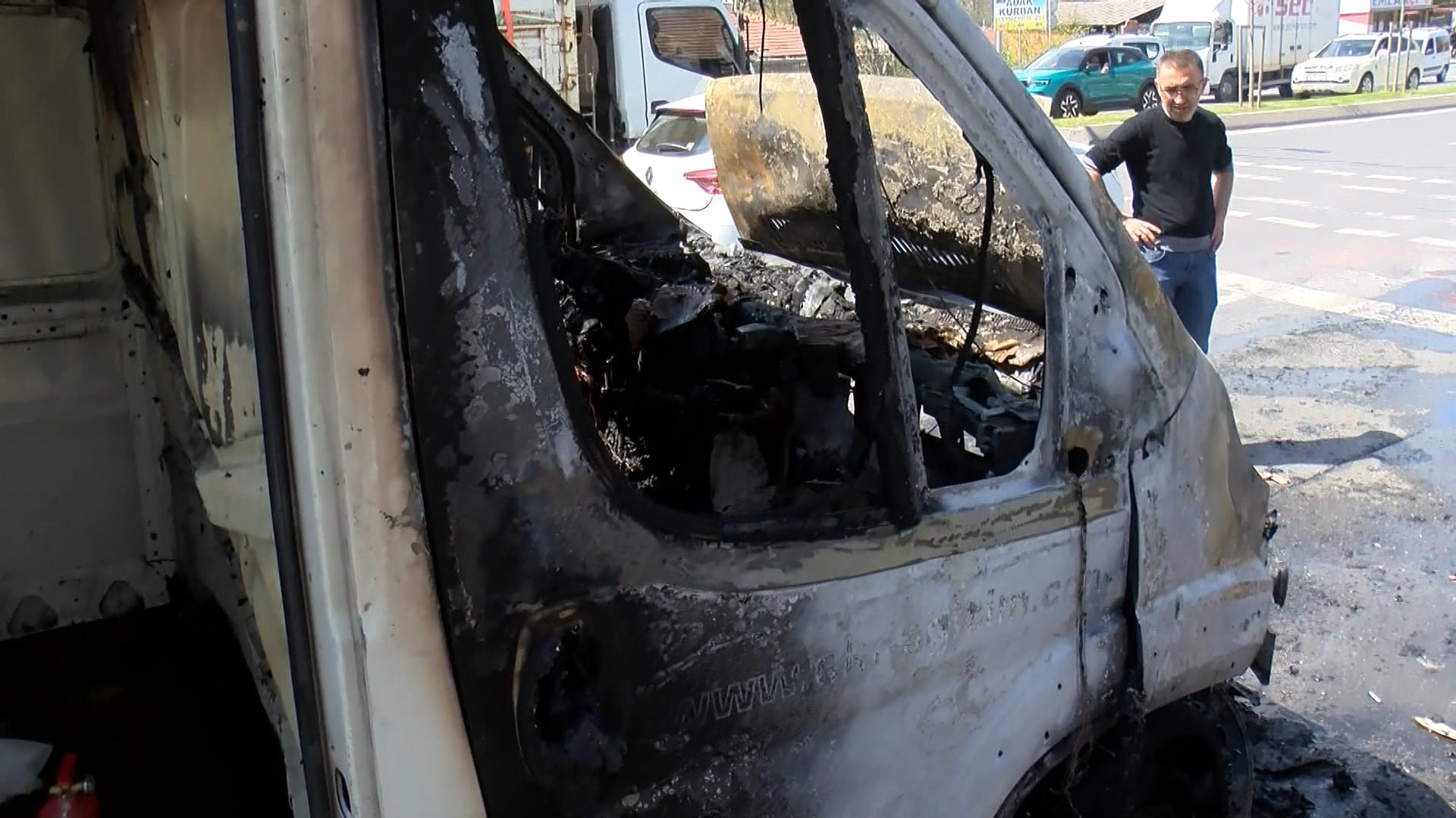 Edinilen bilgiye göre; jant yüklü kapalı kasa minibüsün motor kısmında dumanların yükseldiğini gören şoför Burak Özkaya, yol kenarına çektiği araçtan araçtan indi.