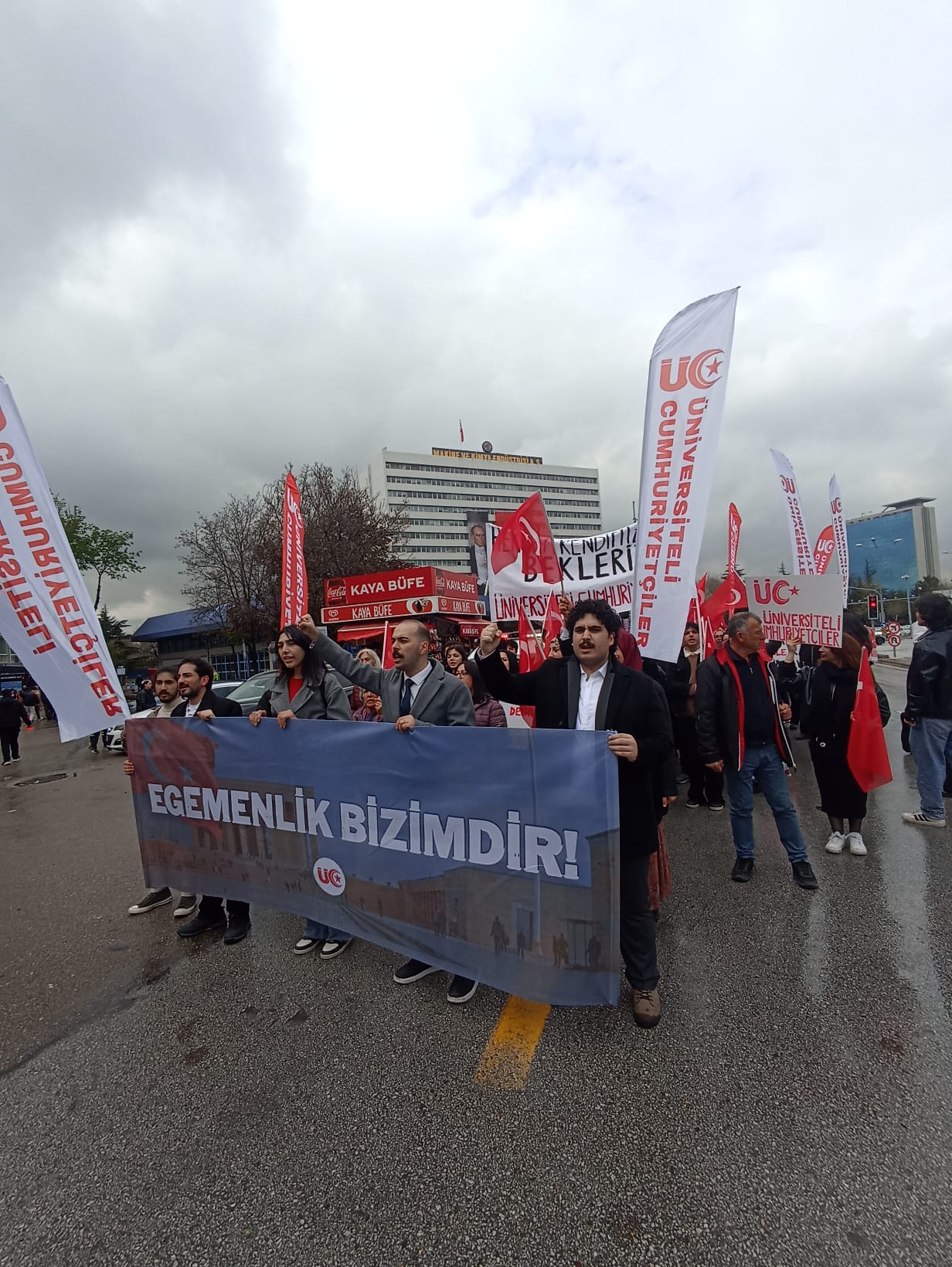 Yürüyüşe katılan kurumlardan Sosyalist Cumhuriyet Gençliği Genel Sekreteri Mete Utku Kılıç ise konuşmasında gençliğin güncel sorunlarına dikkat çekti; ‘’ ’Biz bu ülkenin gençliği olarak yalnızca iş, yalnızca ekmek istemiyoruz. Biz onurlu bir yaşam istiyoruz! Biz eşitlik istiyoruz! Bugün Türkiye’de milletin değil, torpilin egemen olduğu bir düzen kurulmuştur. Paranın, ayrıcalığın, bağlantıların, Ankara’daki ‘dayılar’ın belirlediği bir düzen! Gençliğe biçilen rol açıktır: Susmak, boyun eğmek, kabullenmek, işsiz kalmak, yoksullukla yaşamak. Ama biz bu rolü en gür sesimizle reddediyoruz! Sıra arkadaşlarım, her bir yandan saldırı altındayız! Egemenliğimiz değil köprülerimiz satılırken sessiz kalamayız. Akbelen Ormanları talan edilirken susamayız. Giresun’un toprakları maden sahalarına çevrilirken bekleyemeyiz! Bu bayramın adı Ulusal Egemenlik ve Çocuk Bayramı. Ancak daha birkaç gün önce, çocuklarımız katledildi. Öğretmenlerimiz katledildi. Görevini yapması gerekenler görevini yapmıyor. Sokakta, hastanede, okulda şiddet her yerde! Sistem, bu bozuk düzen insanı insana kırdırtıyor ve pişkince gülüyor. Çünkü biliyorlar ki bizim yürüdüğümüz sokaklarda yürümüyor, bizim gittiğimiz hastanelere gitmiyor, çocuklarını bizim gittiğimiz okullara göndermiyorlar.’’