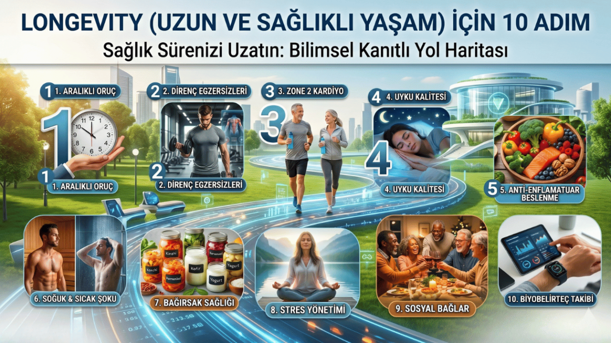 Sauna kullanımı (ısı şoku proteinleri) ve soğuk duşlar (vazokonstriksiyon), bağışıklık sistemini çelikleştirir. Bu “hormetik stres” türleri, vücudun zorluklara karşı direncini artırarak yaşlanma hızını yavaşlatır.