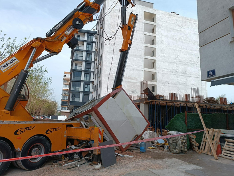 Mansuroğlu Mahallesi 263 Sokak üzerinde meydana geldi. Bir bina inşaatında vincin taşıma kolu, kırılarak güvenlik kulübesi olarak kullanılan konteynerin üzerine düştü, içerideki 2 işçi yaralandı.