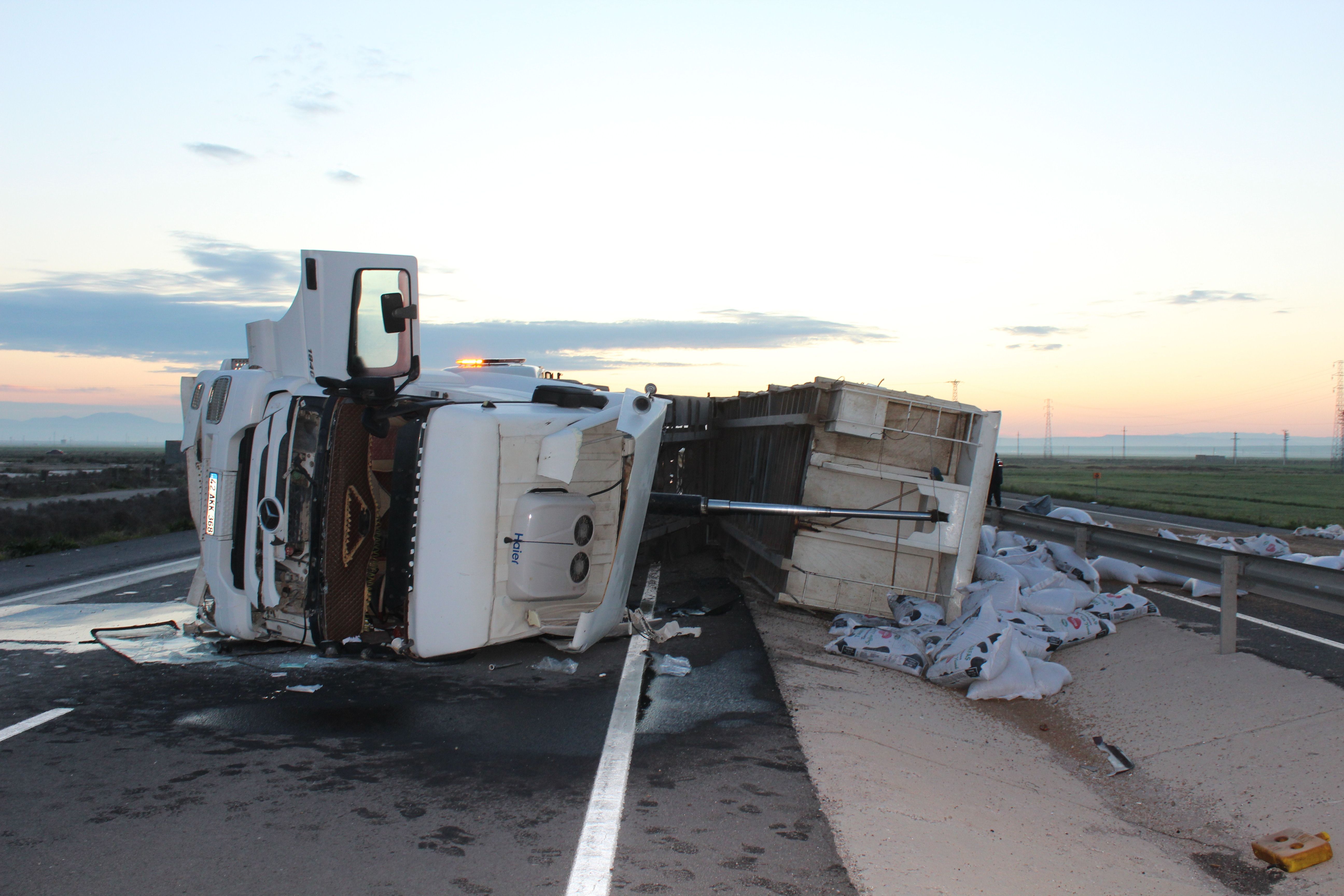 Kaza, sabah saat 06.00 sıralarında Aksaray-Konya kara yolunun 19’uncu kilometresinde meydana geldi. Mustafa Ceylan (52) idaresindeki 42 AKK 368 plakalı yem yüklü TIR, sürücüsünün direksiyon kontrolünü yitirmesi sonucu refüje devrildi. O sırada ailesiyle birlikte, eşinin kardeşinin düğününe katılmak üzere Bingöl’den Manisa’ya gitmek için yolda olan Mehmet Bingöl (53), 06 FRZ 429 plakalı otomobiliyle devrilen TIR’ı fark ederek yardım etmek amacıyla durdu.