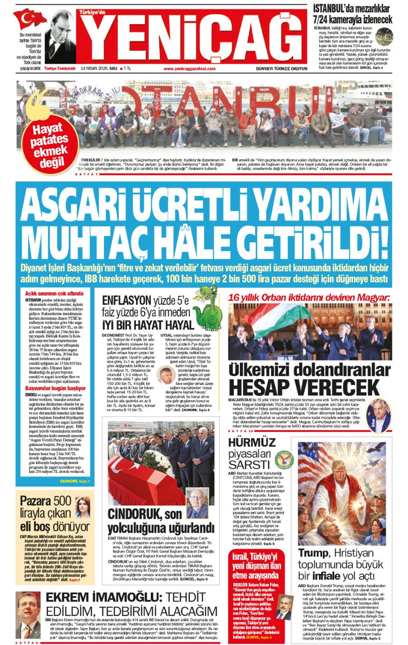 Yeniçağ Gazetesi’nin bugünkü manşeti…