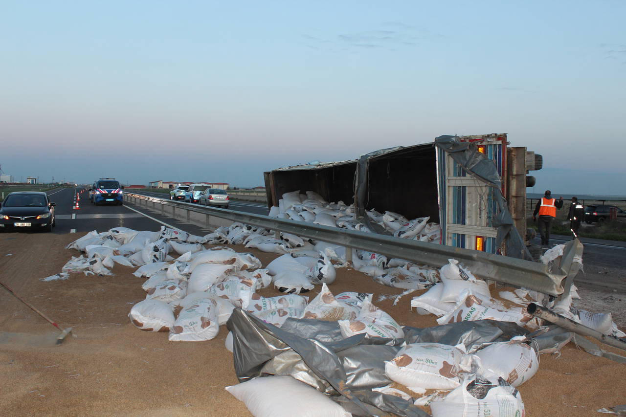 Mustafa Ceylan’ın kontrolünü yitirdiği yem yüklü TIR, refüje devrildi. Ailesiyle birlikte, eşinin kardeşinin düğünü için Bingöl’den Manisa’ya gitmek için otomobiliyle yola çıkan Mehmet Bingöl, kazayı görüp, yardım etmek amacıyla durdu.