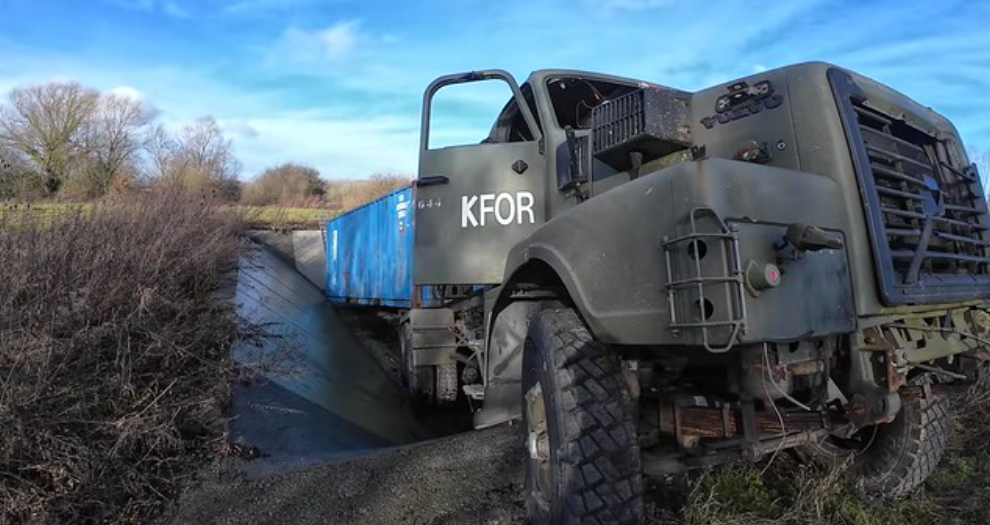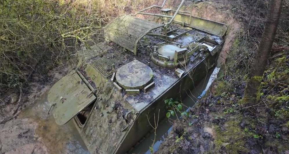 Kanalın ardından ortaya çıkan alan ise en az onun kadar dikkat çekici. Bölgede, Belçika ordusuna ait olduğu düşünülen çok sayıda askeri araç düzensiz şekilde terk edilmiş halde bulunuyor. Devrilmiş bir Leopard 1 tankı, yamaçta bırakılmış bir obüs ve farklı noktalara dağılmış askeri kamyonlar bu görüntüler arasında yer alıyor.