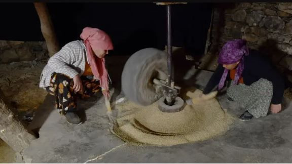 Köy muhtarı İzzettin Uyanık, üretimin tamamen doğal yöntemlerle yapıldığını vurgulayarak, değirmenin yüzyıllardır aktif olduğunu belirtiyor.