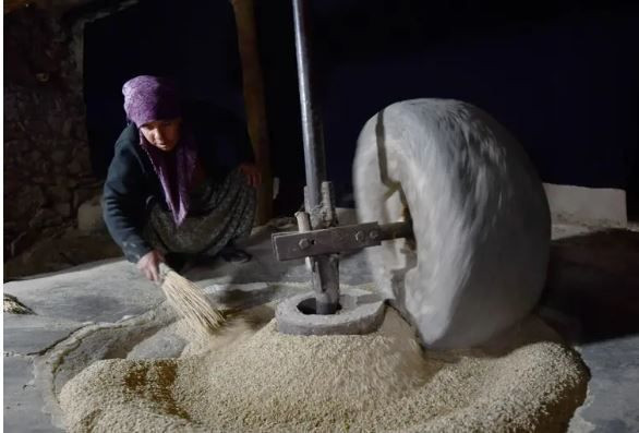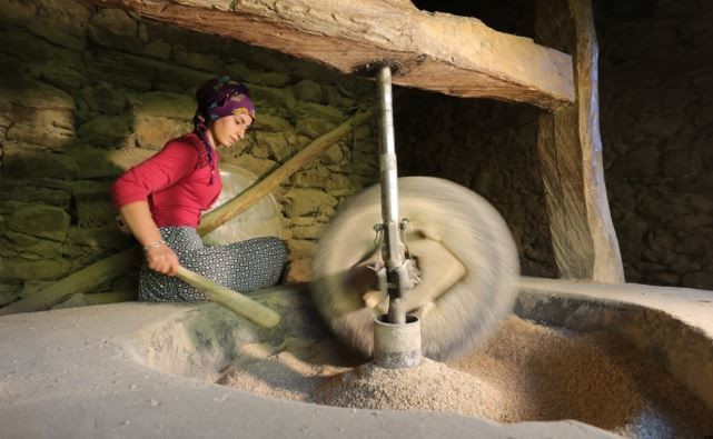 Hasat edilen ürünler ise fabrikalara gönderilmek yerine Yamaç mezrasındaki tarihi su değirmenine taşınıyor.