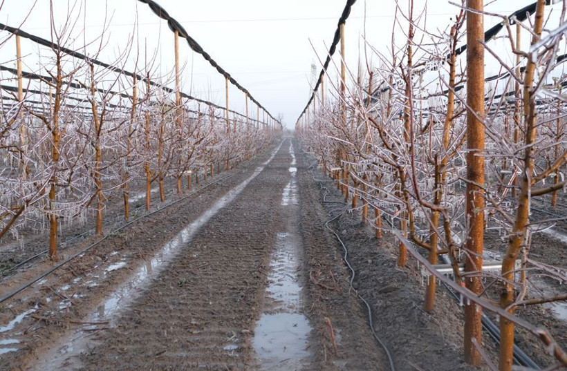 Soğuk havanın etkisiyle suyun buza dönüştürülüp, çiçek gözünün ısısını artırmayı hedeflendiği yöntem, birçok çiftçi tarafından tercih edildi.